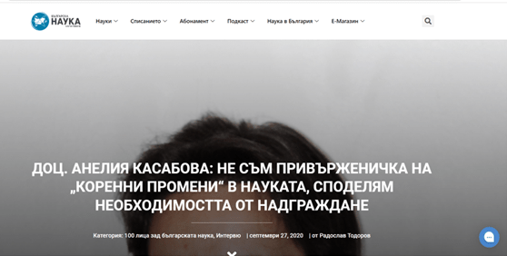 Касабова, А. Не съм привърженичка на „коренни промени“ в науката, споделям необходимостта от надграждане. – Nauka.bg (27.09.2020).